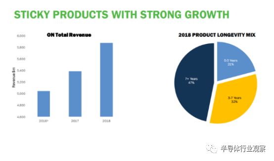 安森美的产品中,竟然有一半产品是7年以上的生命周期,这也符合其对汽车和工业领域所做出的投入。
